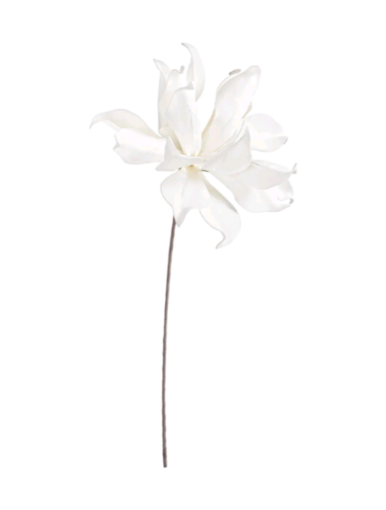 Ανανεώστε τον χώρο σας με αυτό το κομψό διακοσμητικό κλαδί , κατασκευασμένο από υψηλής ποιότητας foam (αφρώδες υλικό), που αποτυπώνει με εντυπωσιακή λεπτομέρεια τη φυσική ομορφιά ενός λευκού λουλουδιού. Τα απαλά, ανάλαφρα πέταλα σχηματίζουν ένα εντυπωσιακό άνθος με ρευστή κίνηση και φυσική όψη, προσφέροντας μία διακριτική αίσθηση πολυτέλειας.