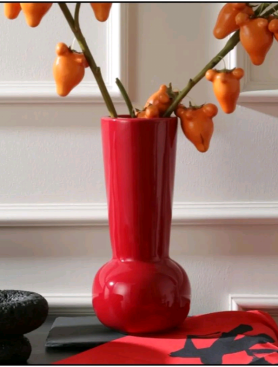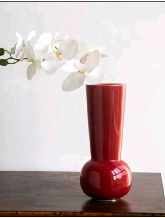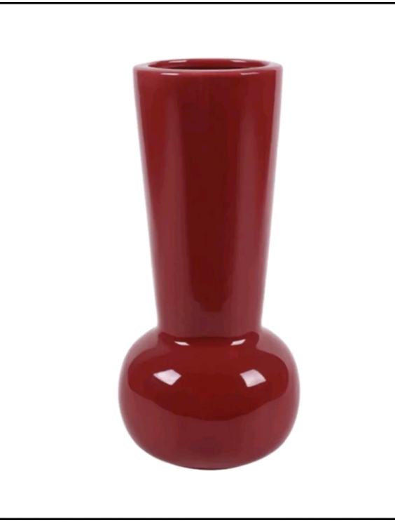 Η γυαλιστερή επιφάνεια αντανακλά το φως με τρόπο που προσδίδει βάθος και λάμψη, κάνοντας το βάζο να ξεχωρίζει ακόμη και μόνο του πάνω σε κονσόλα, τραπέζι ή ράφι. Είναι ιδανικό για μακριά λουλούδια, minimal συνθέσεις ή αποξηραμένα κλαδιά. Το έντονο κόκκινο χρώμα του φέρνει ζωντάνια και θέρμη στο σπίτι, λειτουργώντας ως statement διακοσμητικό στοιχείο.