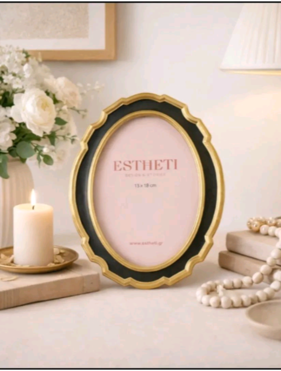 Μία εντυπωσιακή κορνίζα που ξεχωρίζει για το εκλεπτυσμένο design και την υψηλή αισθητική της. Το μαύρο φόντο σε συνδυασμό με τις χρυσές λεπτομέρειες δημιουργούν μια αίσθηση πολυτέλειας, καθιστώντας την ιδανική για statement διακοσμητικές συνθέσεις.